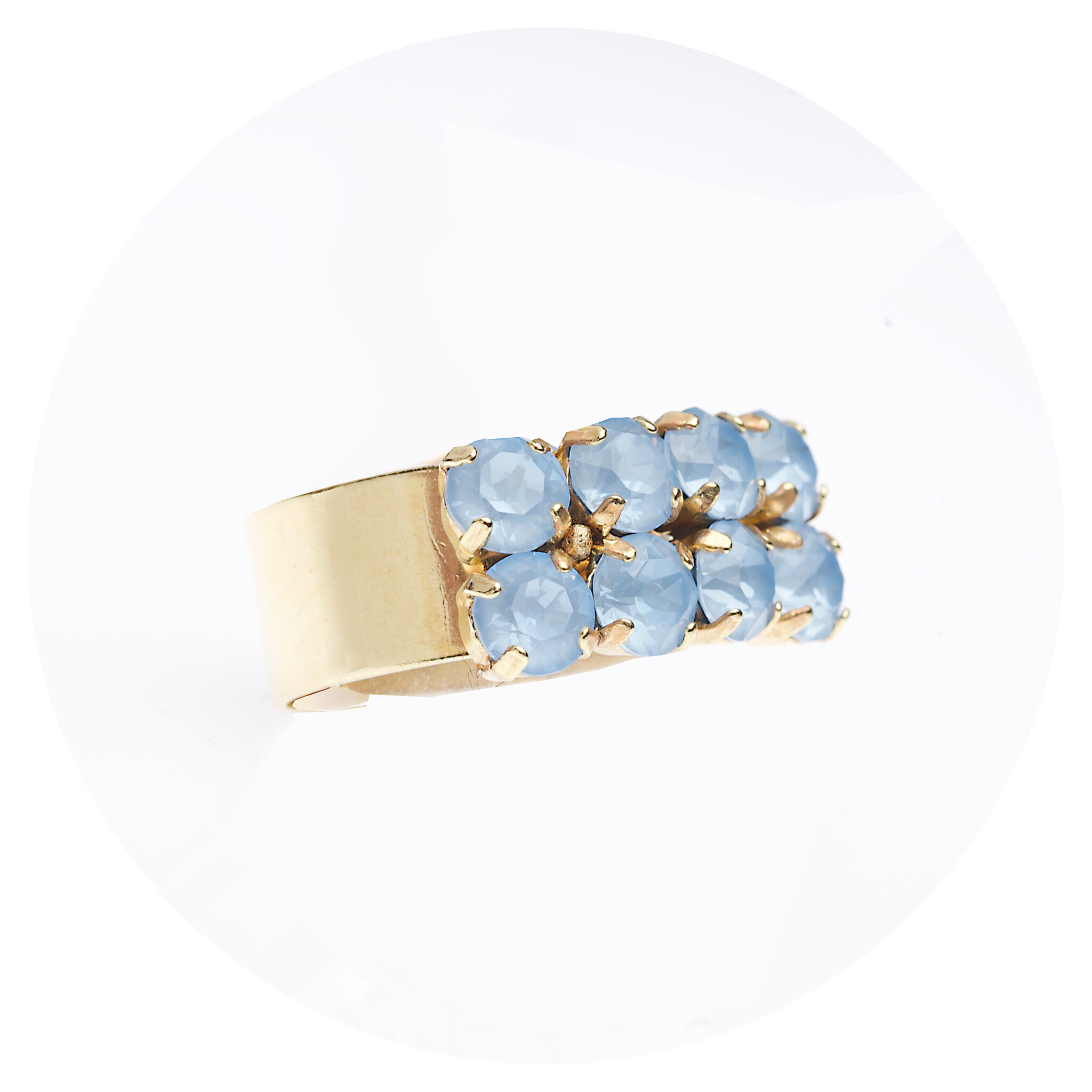 Goldener Ring in sky ignite. Der Ring ist 25x12mm gross. Mit 8 geschliffenen Kristallen die jeweils eine Grösse von 6mm haben. Der Ring hat eine Gold Auflage und ist in der Fingergrösse verstellbar. Handmade in Germany - LOVESTYLE JEWELS!