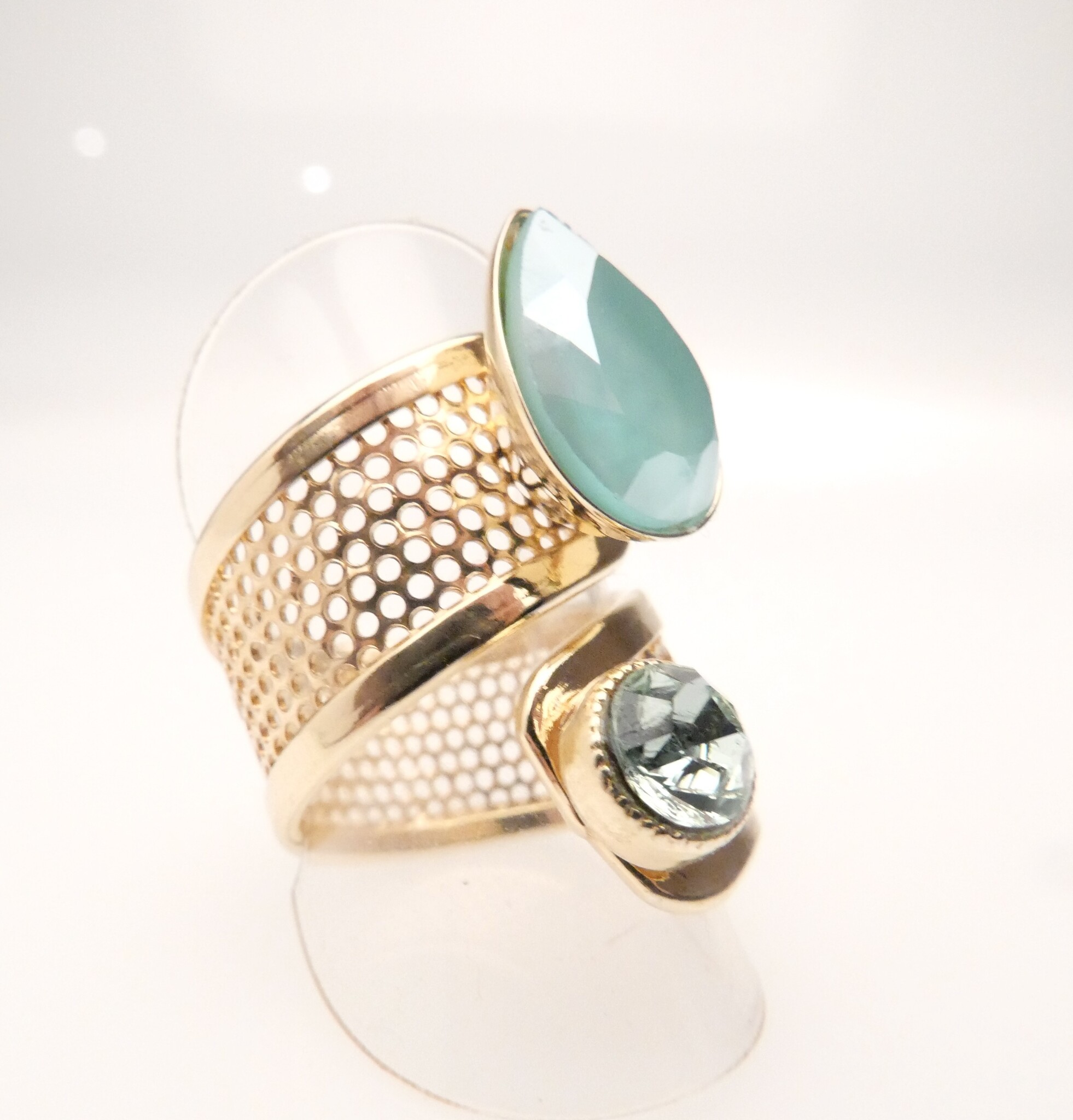 Stylischer goldener Statement Ring mit geschliffenen Kristallen in mint . Die Ringgrösse ist verstellbar. Mit einer hochwertigen Vergoldung Made in Germany!
