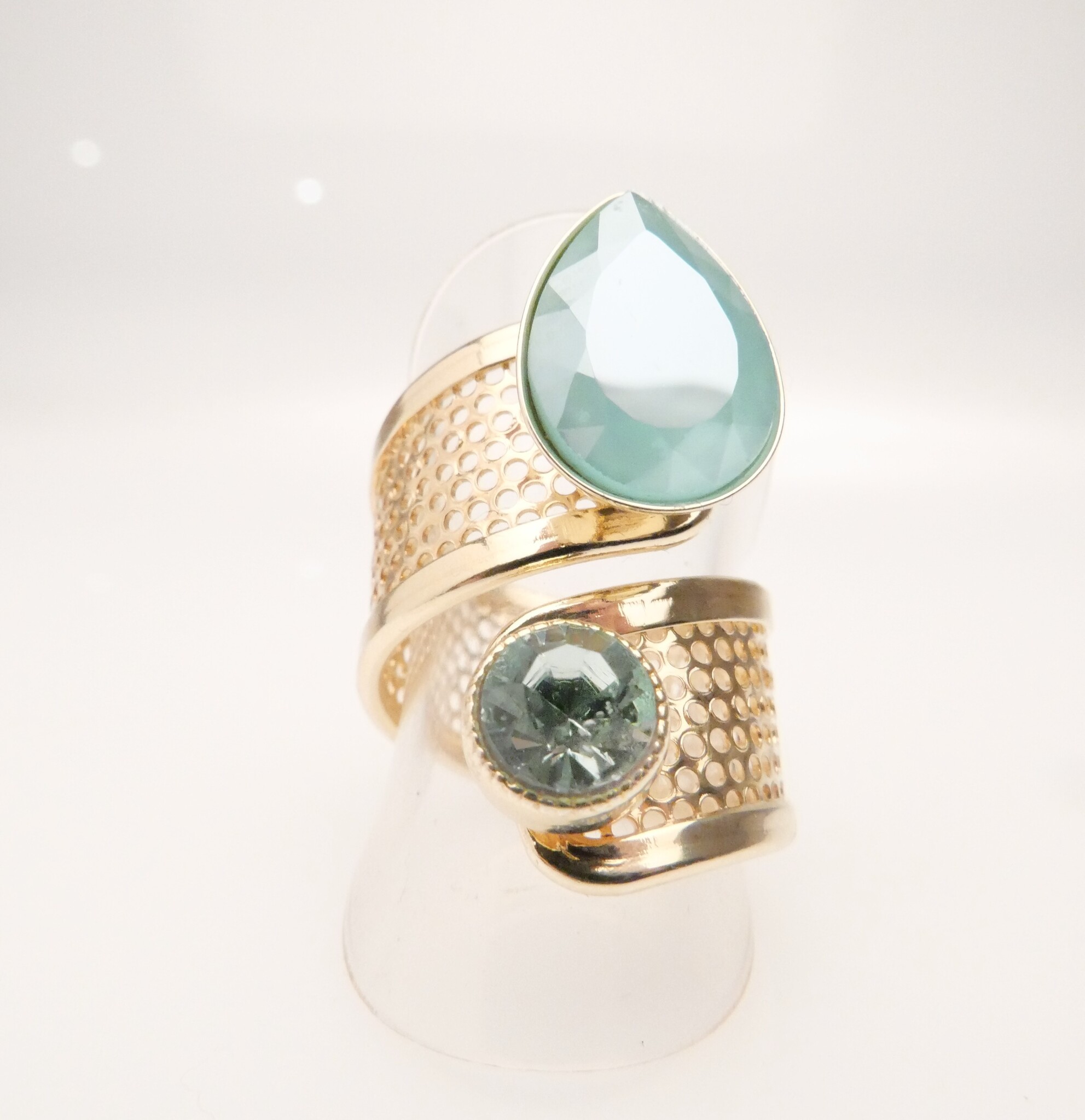 Stylischer goldener Statement Ring mit geschliffenen Kristallen in mint green. Die Ringgrösse ist verstellbar. Mit einer hochwertigen Vergoldung Made in Germany!