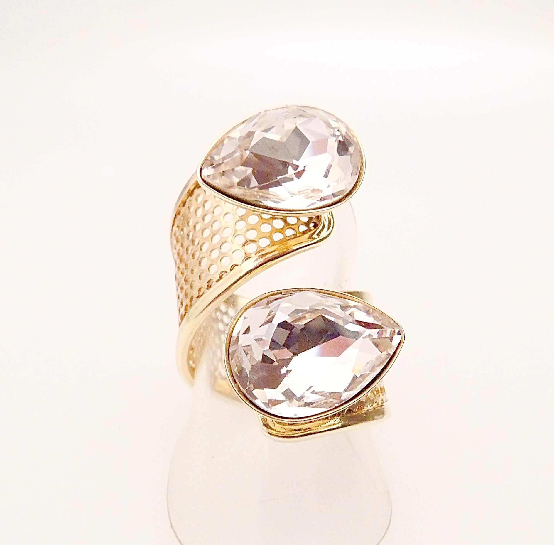 Stylischer goldener Statement Ring mit geschliffenen Kristallen in vintage rose . Die Ringgrösse ist verstellbar. Mit einer hochwertigen Vergoldung Made in Germany!