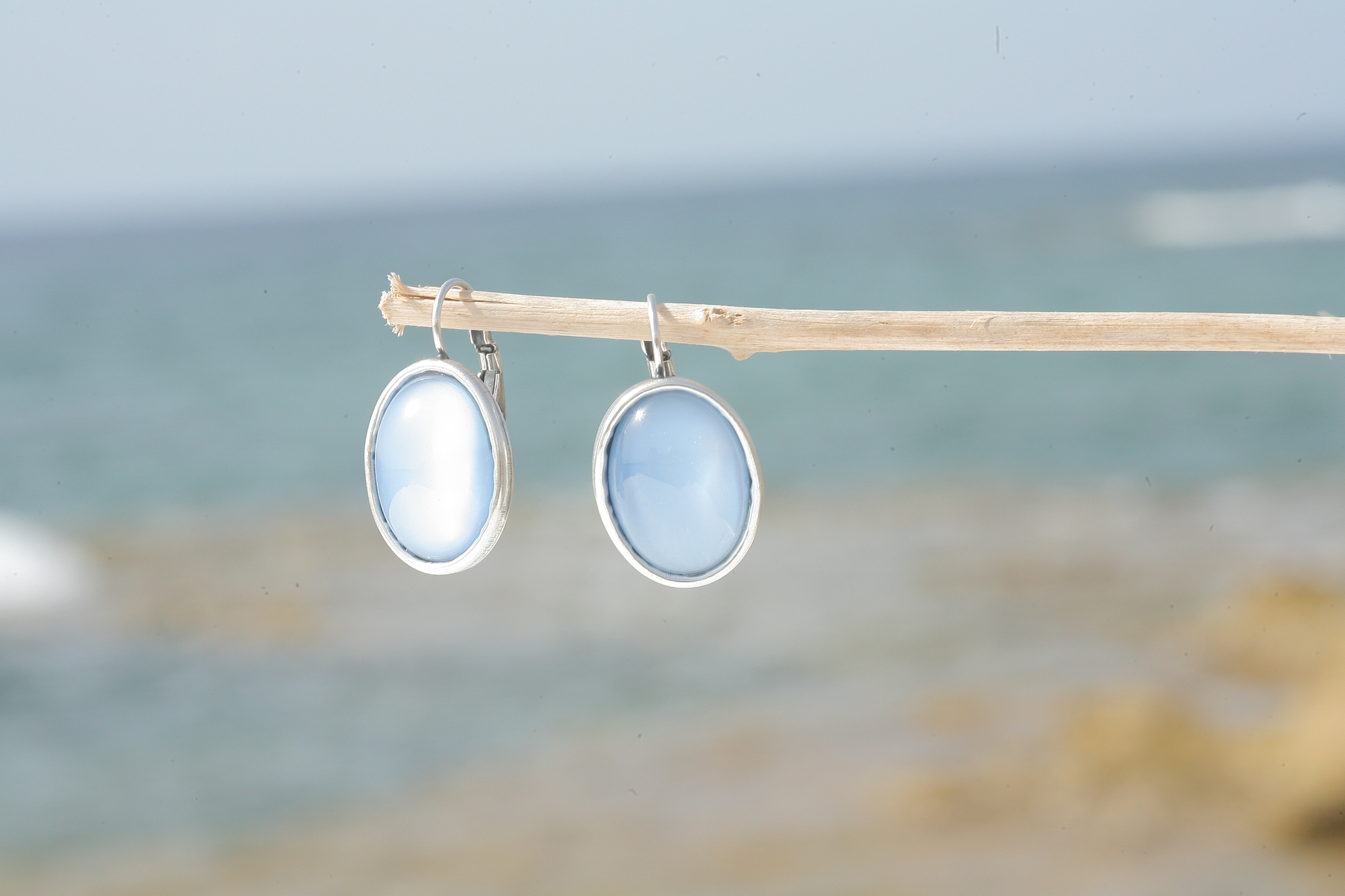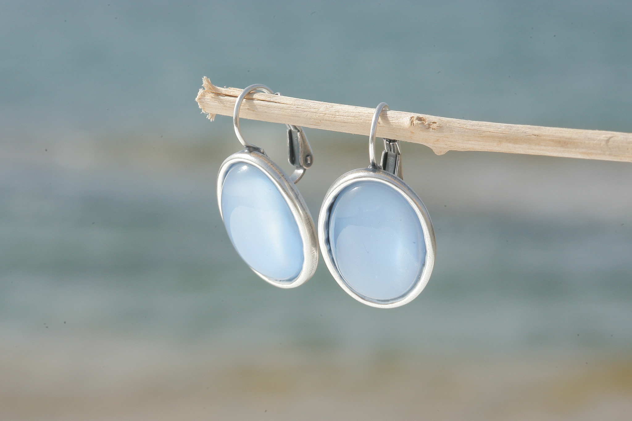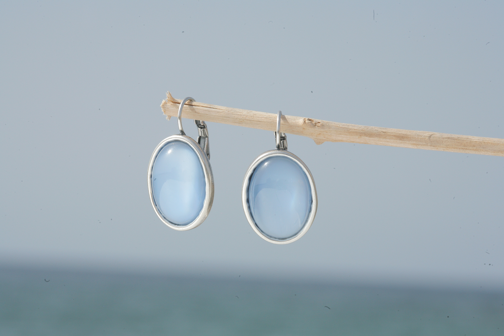 Diese Ohrringe haben eine sehr hochwertige Reinsilber Versilberung in einem einzigartigen Silber Patina Ton - Made in Germany! Mit zwei handgegossenen 18 x 13mm grossen ovalen Glascabochons in seidenhellblau.Die Ohrringe sind 30 mm lang. Gerne fertigen wir Dir diese Ohrringe auch in deiner Lieblingsfarbe an. Hand made in unserem Atelier in Düsseldorf!