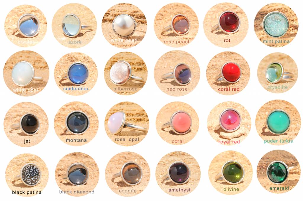 Dieser Ring hat eine sehr hochwertige Reinsilber Versilberung in einem einzigartigen Silber Patina Ton - made in Germany! Der von Hand gefertigte 16mm grosse Glascabochon ist ein mint patina mit eingeschmolzenem Feinsilber. Der Ring hat einen Durchmesser von 18mm. Die Ringschiene ist in der Größe verstellbar von 46-62. Gerne fertigen wir Dir diesen Ring auch in vielen anderen Farben an. Hand made aus unserem Atelier in Düsseldorf!