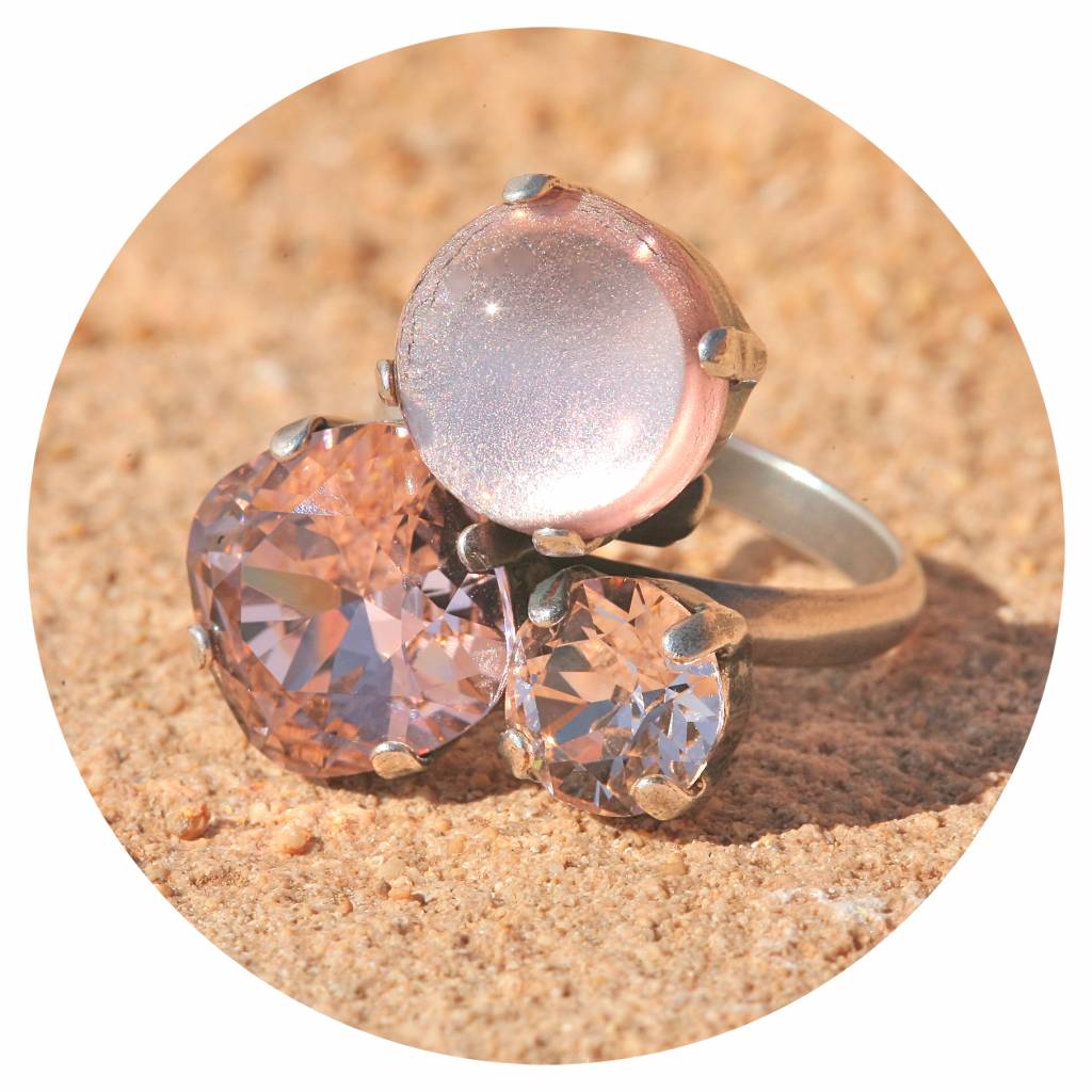 Dieser Ring hat eine sehr hochwertige Reinsilber Versilberung in einem einzigartigen Silber Patina Ton- Made in Germany! Mit 2 geschliffenen Kristallen von Swarovski und einem Cabochon - einen runden 8mm grossen Kristall in vintage rose, ein Cabochon 12 mm gross in neo rose & ein blush rose Kristall 12 x 12 mm gross. Die Gesamtgrösse des Rings ist ca. 2,3 x 2 cm. Die Ringschiene ist in der Grösse verstellbar von 46-62. Diesen Ring können wir Dir in vielen Farbkombinationen anfertigen. Hand made aus unserem Atelier in Düsseldorf!