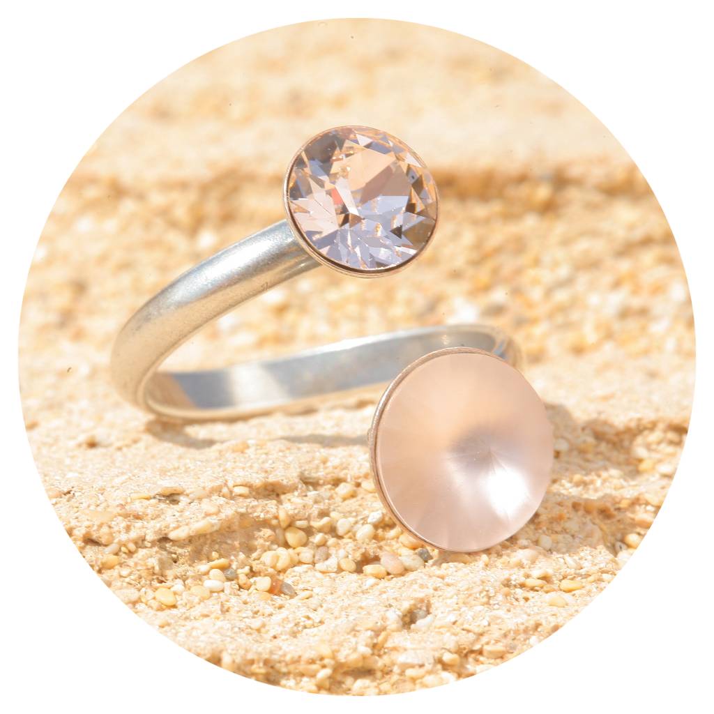 Der Ring hat eine sehr hochwertige Reinsilber Versilberung in einem einzigartigen Silber Patina Ton - Made in Germany! Mit zwei geschliffenen Kristallen von SWAROVSKI in vintage rose und vintage rose matt. Die Ringschiene in der Grösse verstellbar von ca.46-62. Diesen Ring können wir Dir sehr gerne auch in deinen Lieblingsfarben anfertigen. Hand made in unserem Atelier in Düsseldorf!