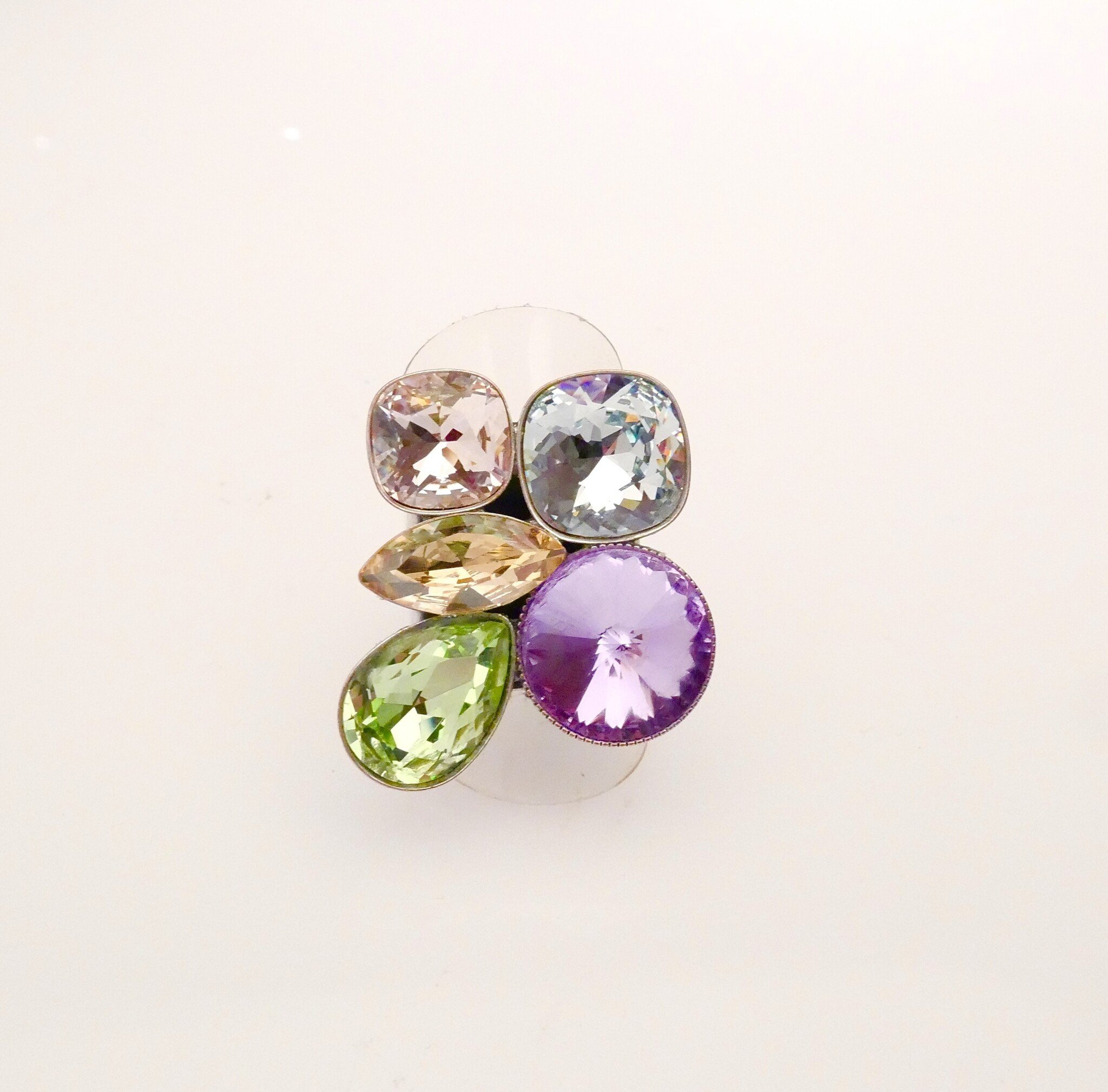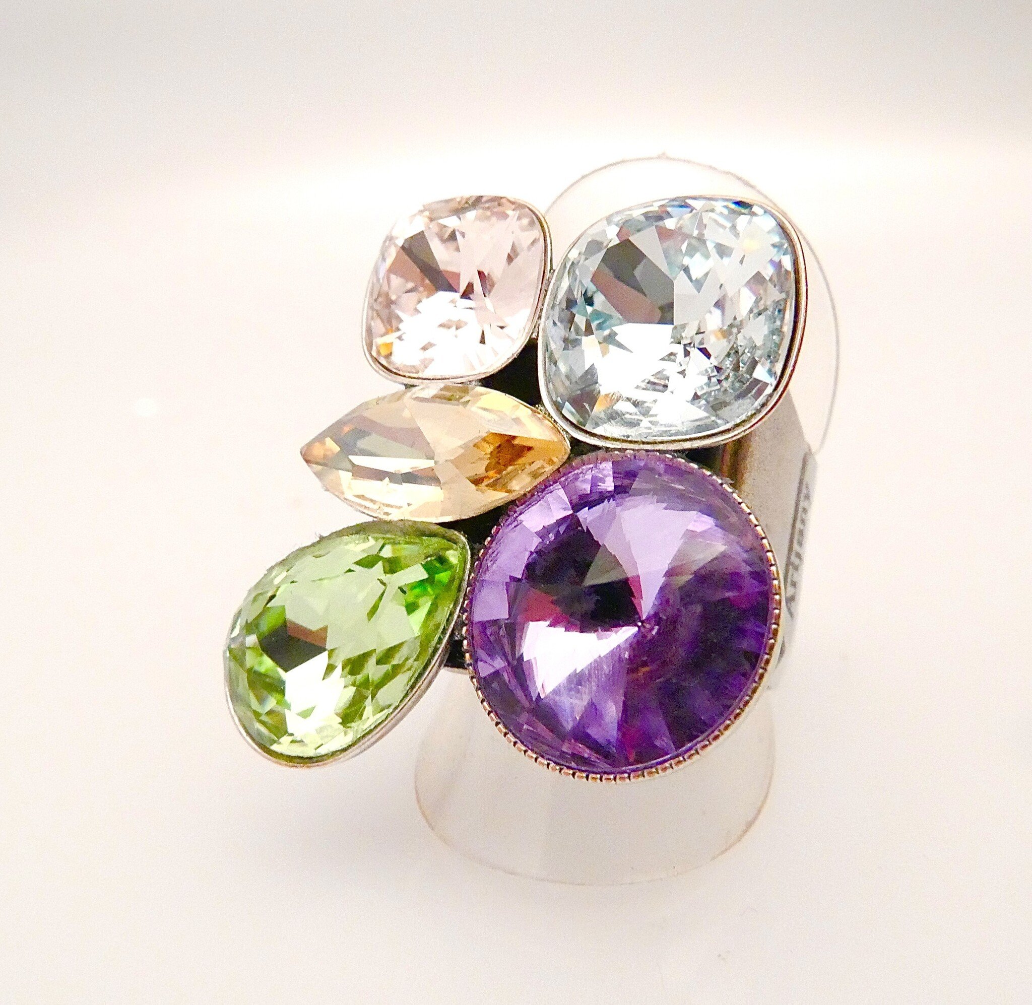 Silberner Ring mit 5 verschiedenen geschliffenen Kristallen.