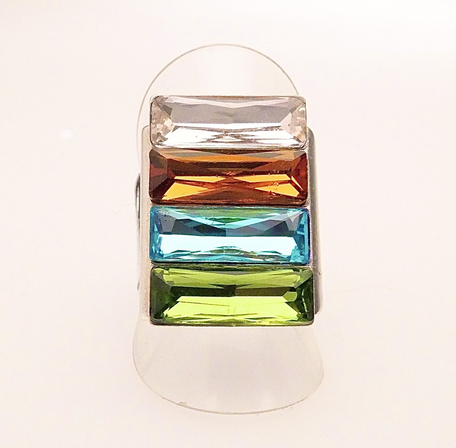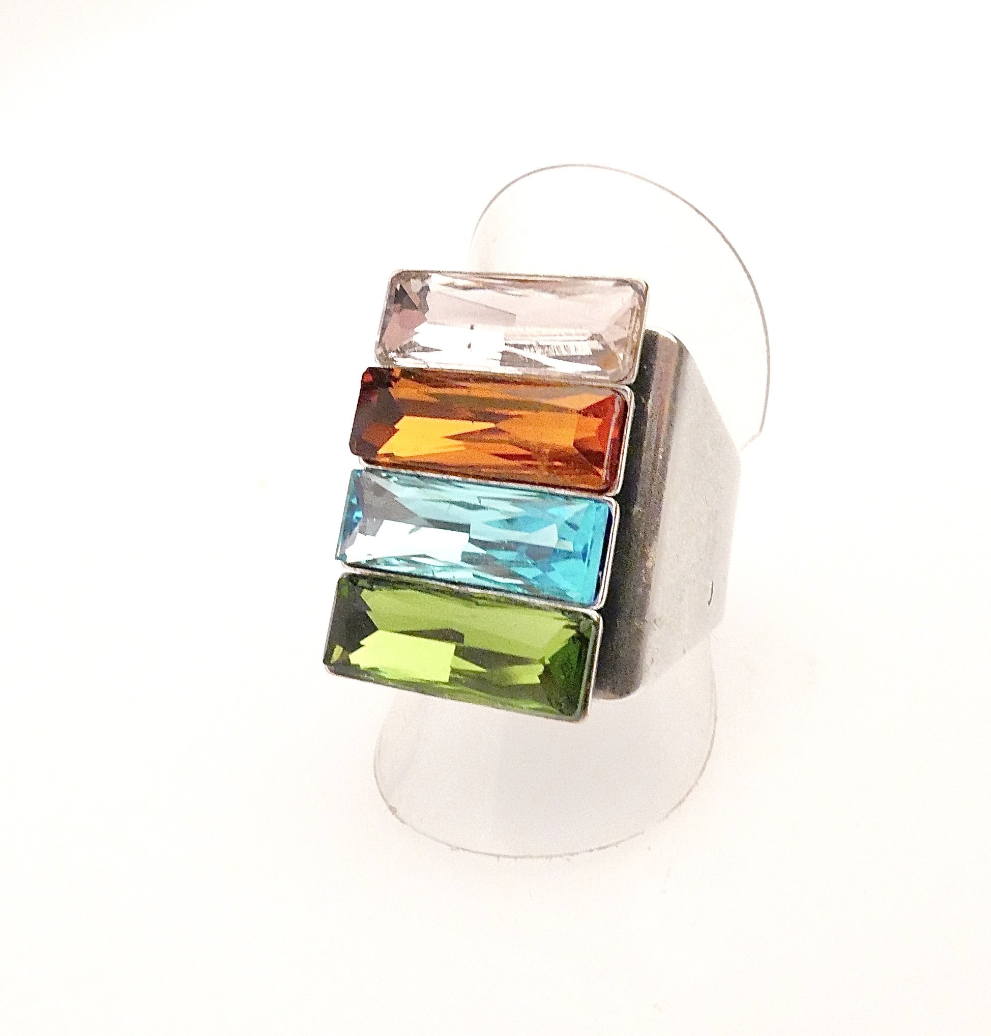 • Silberner Ring mit 4 verschiedenen geschliffenen Kristallen.